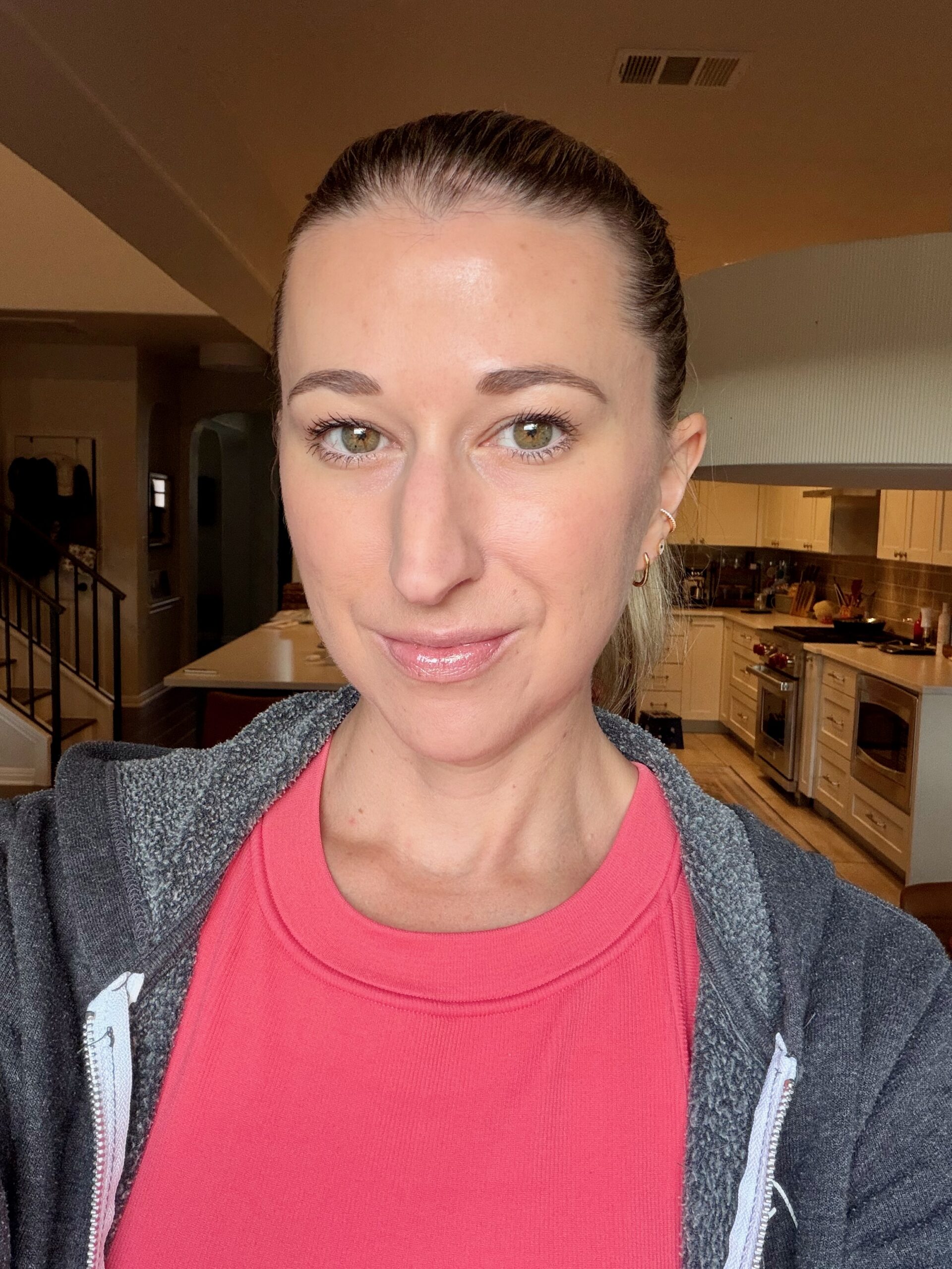 What The Foundation has been a total game changer. It has a built-in primer and moisturizer, so it glides on without that heavy, cakey feeling. It is hands down the easiest liquid foundation I’ve ever used and it blends beautifully. It doesn’t cling to dry spots or sink into lines, and it leaves my skin looking hydrated instead of flat. I still use a little matte powder on top because I’m not a shiny-face girl, even though that look is very in right now, but the finish lasts all day.